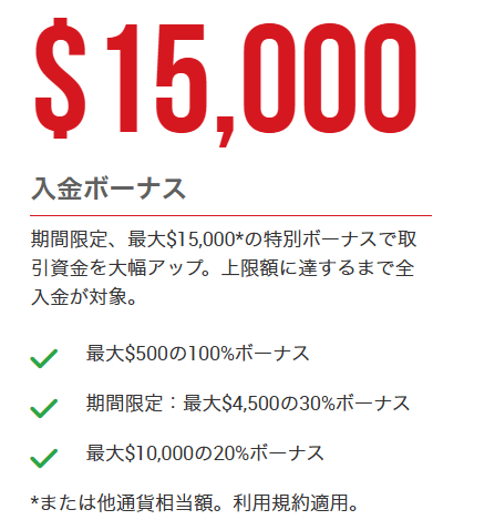 | ボーナス制度 | 口座開設ボーナス・入金ボーナス・ロイヤルティプログラム |
